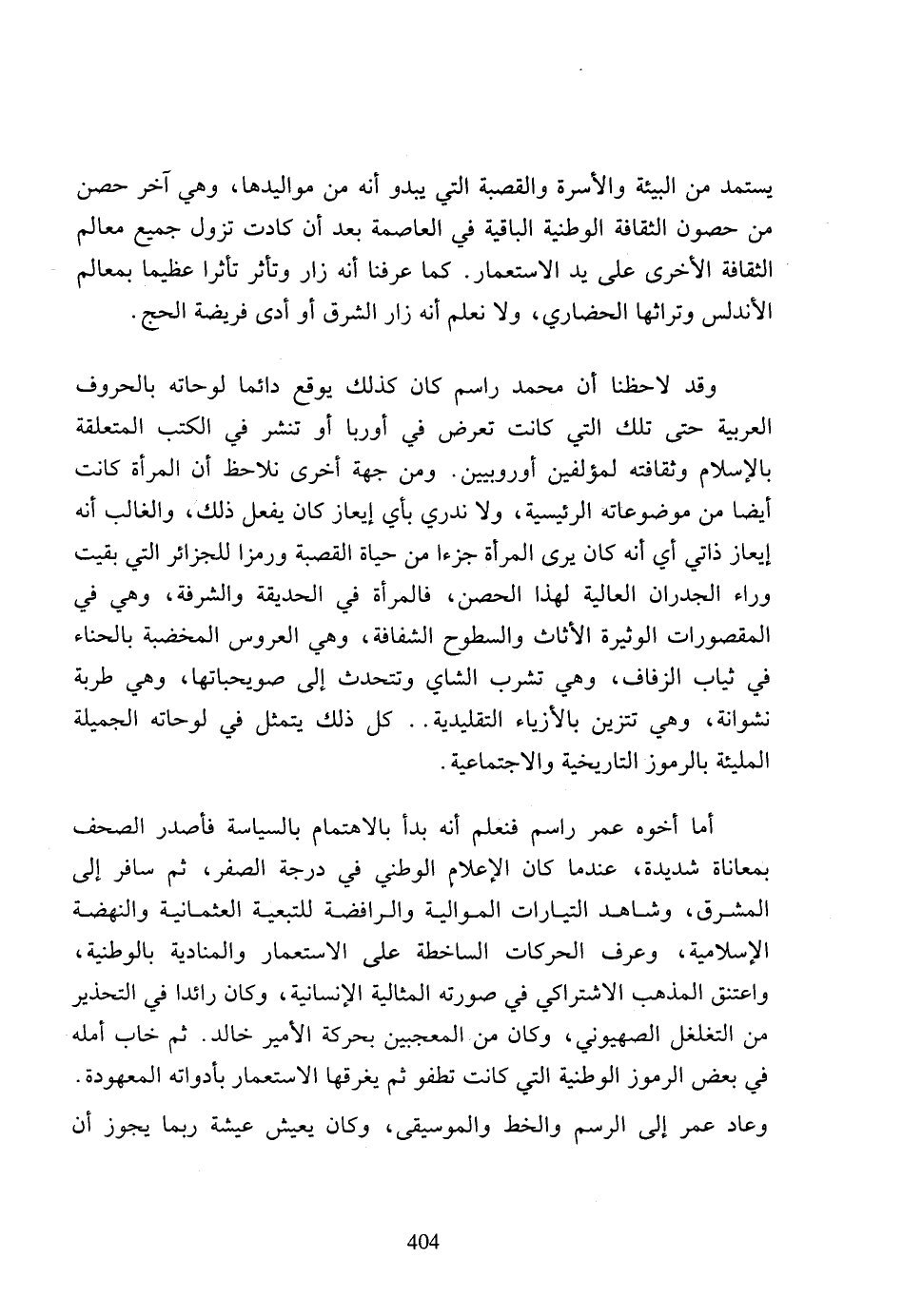 أما أخوه عمر راسم فنعلم أنه بدأ بالاهتمام بالسياسة فأصدر الصحف بمعاناة شديدة، عندما كان الإعلام الوطني في درجة الصفر، ثم سافر إلى المشرق، وشاهد التيارات الموالية والرافضة للتبعية العثمانية والنهضة الإسلامية، وعرف الحركات الساخطة على الاستعمار والمنادية بالوطنية، واعتنق المذهب الاشتراكي في صورته المثالية الإنسانية، وكان رائدا في التحذير من التغلغل الصهيوني، وكان من المعجبين بحركة الأمير خالد، ثم خاب أمله في بعض الرموز الوطنية التي كانت تطفو ثم يغرقها الاستعمار بأدواته المعهودة، وعاد عمر إلى الرسم والخط والموسيقى، وكان يعيش عيشة ربما يجوز أن