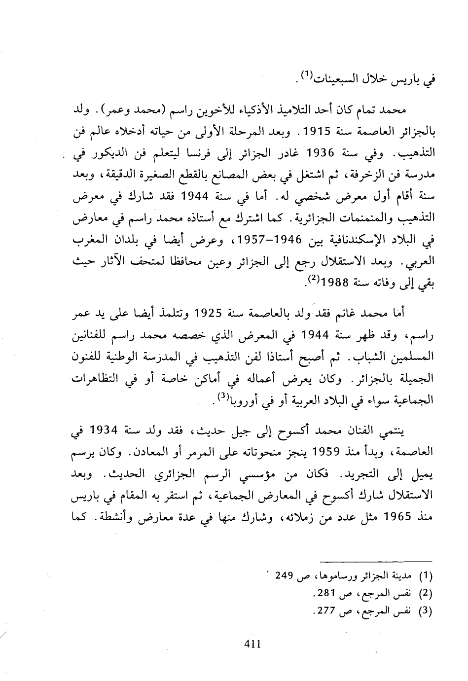 أما محمد غانم فقد ولد بالعاصمة سنة 1925 وتتلمذ أيضا على يد عمر راسم، وقد ظهر سنة 1944 في المعرض الذي خصصه محمد راسم للفنانين المسلمين الشباب، ثم أصبح أستاذا لفن التذهيب في المدرسة الوطنية للفنون الجميلة بالجزائر، وكان يعرض أعماله في أماكن خاصة أو في التظاهرات الجماعية سواء في البلاد العربية أو في أوروبا (3).