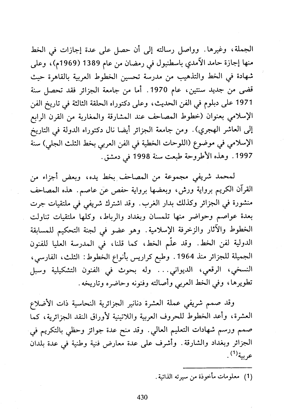 (1) معلومات مأخوذة من سيرته الذاتية.