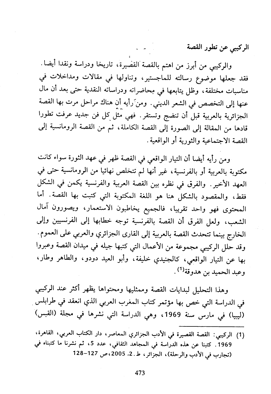 (1) الركيبي: القصة القصيرة في الأدب الجزائري المعاصر، دار الكتاب العربي، القاهرة، 1969، كتبنا عن هذه الدراسة في المجاهد الثقافي، عدد 5، ثم نشرنا ما كتبناه في (تجارب في الأدب والرحلة)، الجزائر، ط، 2، 2005، ص 127 - 128.