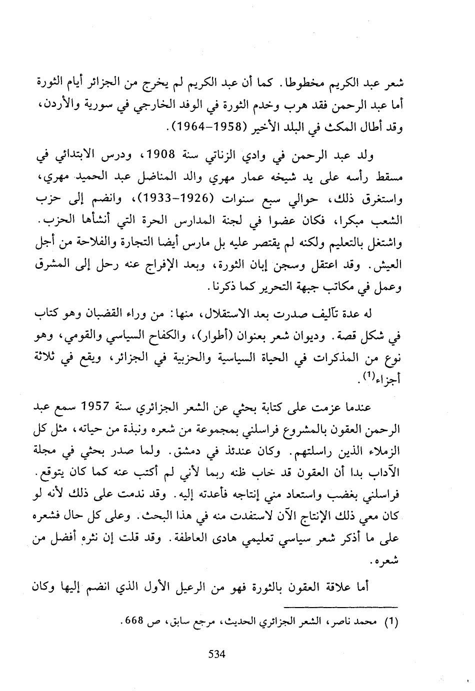 (1) محمد ناصر، الشعر الجزائري الحديث، مرجع سابق، ص 668.