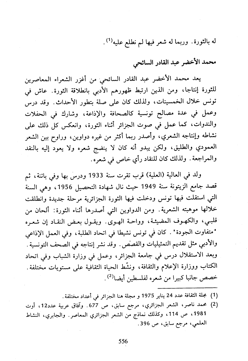 (2) محمد ناصر، الشعر الجزائري، مرجع سابق، ص 677، وآفاق عربية عدد 12، أوت 1981، ص 114، وكذلك نماذج من الشعر الجزائري المعاصر، والجابري، النشاط العلمي، مرجع سابق، ص 396.