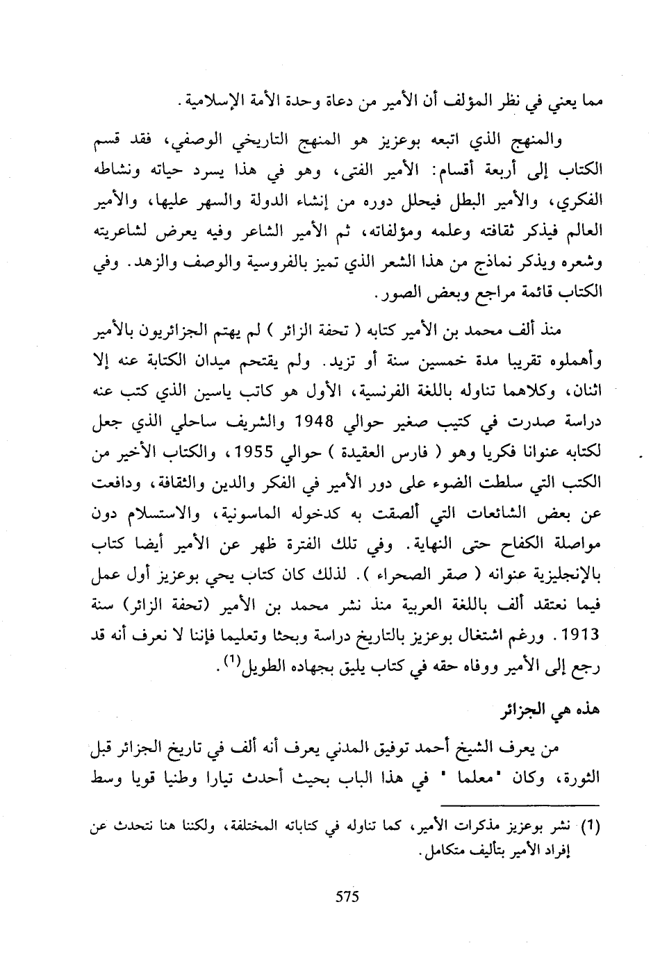 (1) نشر بوعزيز مذكرات الأمير، كما تناوله في كتاباته المختلفة، ولكننا هنا نتحدث عن إفراد الأمير بتأليف متكامل.