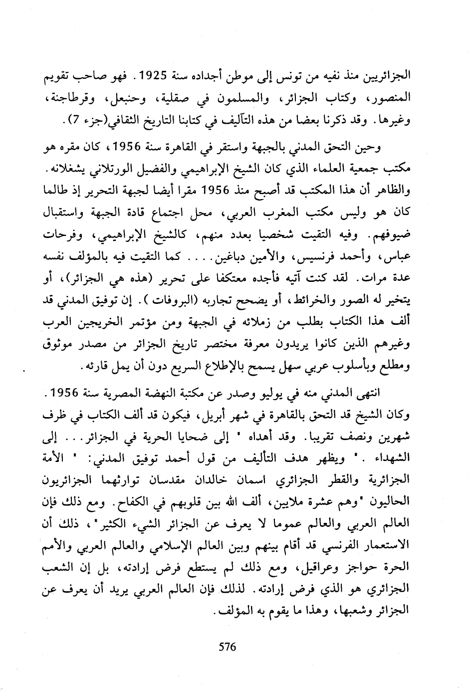 الجزائريين منذ نفيه من تونس إلى موطن أجداده سنة 1925، فهو صاحب تقويم المنصور، وكتاب الجزائر، والمسلمون في صقلية، وحنبعل، وقرطاجنة، وغيرها، وقد ذكرنا بعضا من هذه التآليف في كتابنا التاريخ الثقافي (جزء 7).
