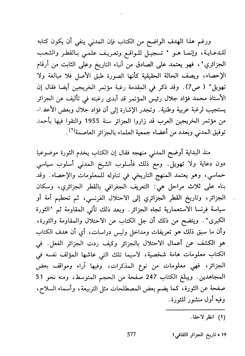 ورغم هذا الهدف الواضح من الكتاب فإن المدني ينفي أن يكون كتابه للدعاية، وإنما هو (تسجيل للواقع وتعريف علمي بالفطر والشعب الجزائري)، فهو يعتمد على الصادق من أنباء التاريخ وعلى الثابت من أرقام الإحصاء، ويصف الحالة الحقيقية كأنها الصورة طبق الأصل فلا مبالغة ولا تهويل) (ص 7)، وقد ذكر في المقدمة رغبة مؤتمر الخريجين أيضا فقال إن الأستاذ محمد فؤاد جلال رئيس المؤتمر قد أبدى رغبته في تأليف عن الجزائر يستجيب لرغبة عربية وطنية، وتجدر الإشارة إلى أن فؤاد جلال وبعض الأعضاء من مؤتمر الخريجين العرب قد زاروا الجزائر سنة 1955 والتقوا فيها بأحمد توفيق المدني وبعدد من أعضاء جمعية العلماء بالجزائر العاصمة (1).