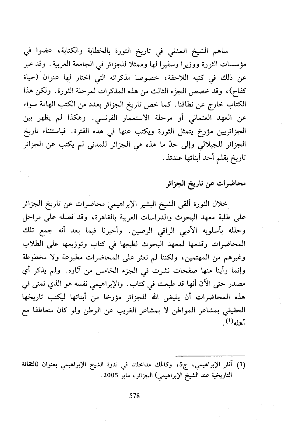 (1) آثار الإبراهيمي، ج 5، وكذلك مداخلتنا في ندوة الشيخ الإبراهيمي بعنوان (الثقافة التاريخية عند الشيخ الإبراهيمي) الجزائر، مايو 2005.