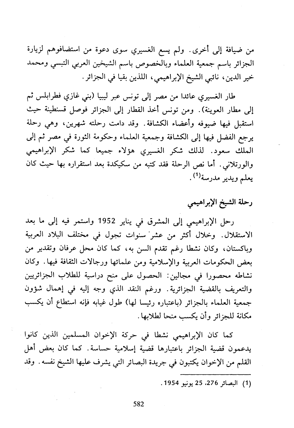 (1) البصائر 276، 25 يونيو 1954.