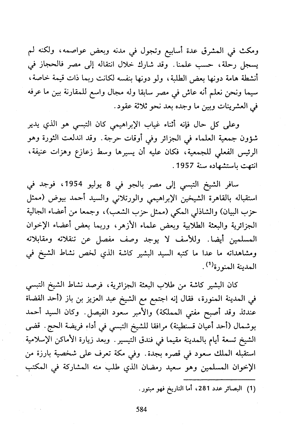(1) البصائر عدد 281، أما التاريخ فهو مبتور.