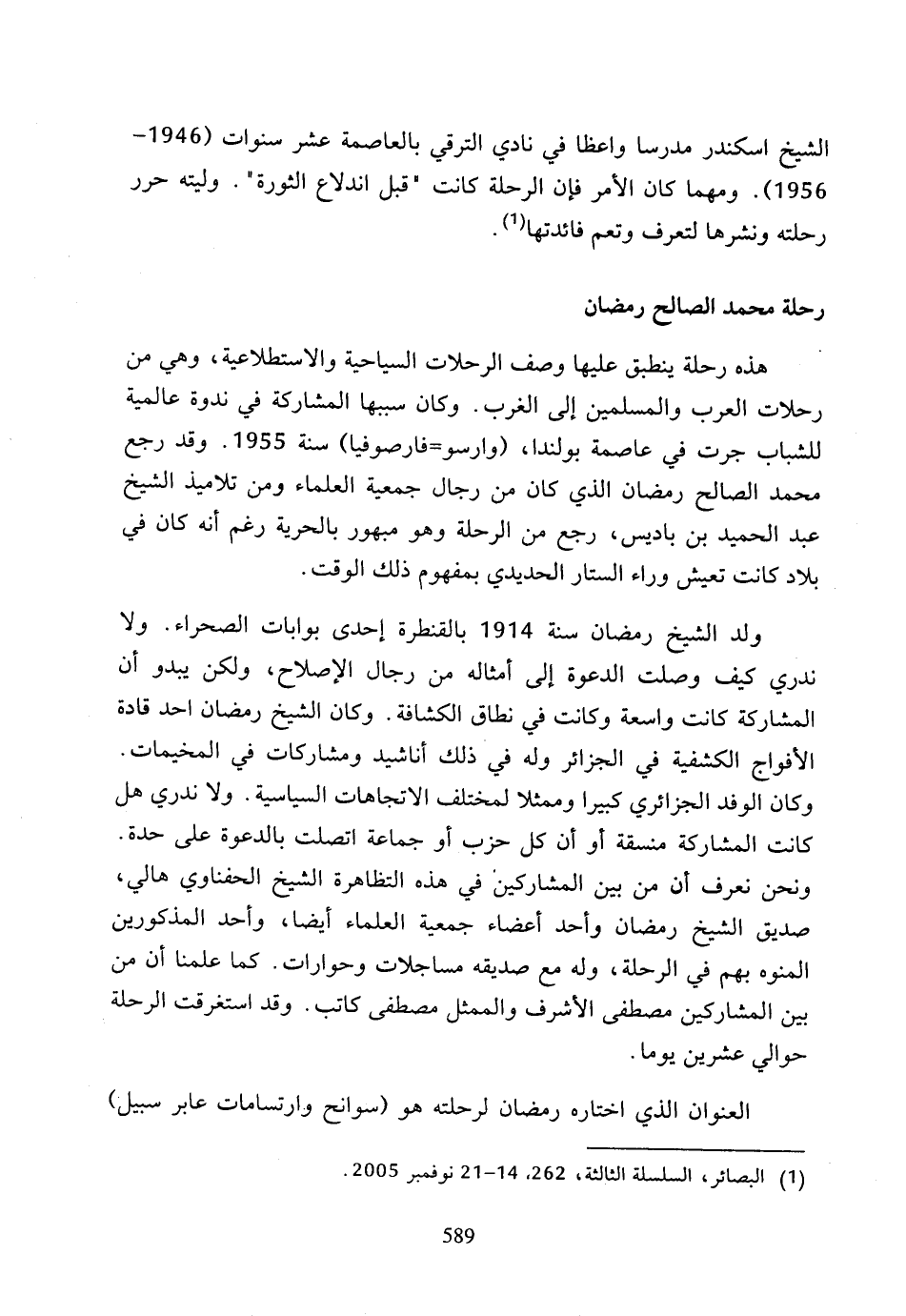 (1) البصائر، السلسلة الثالثة، 262، 14 - 21 نوفمبر 2005.