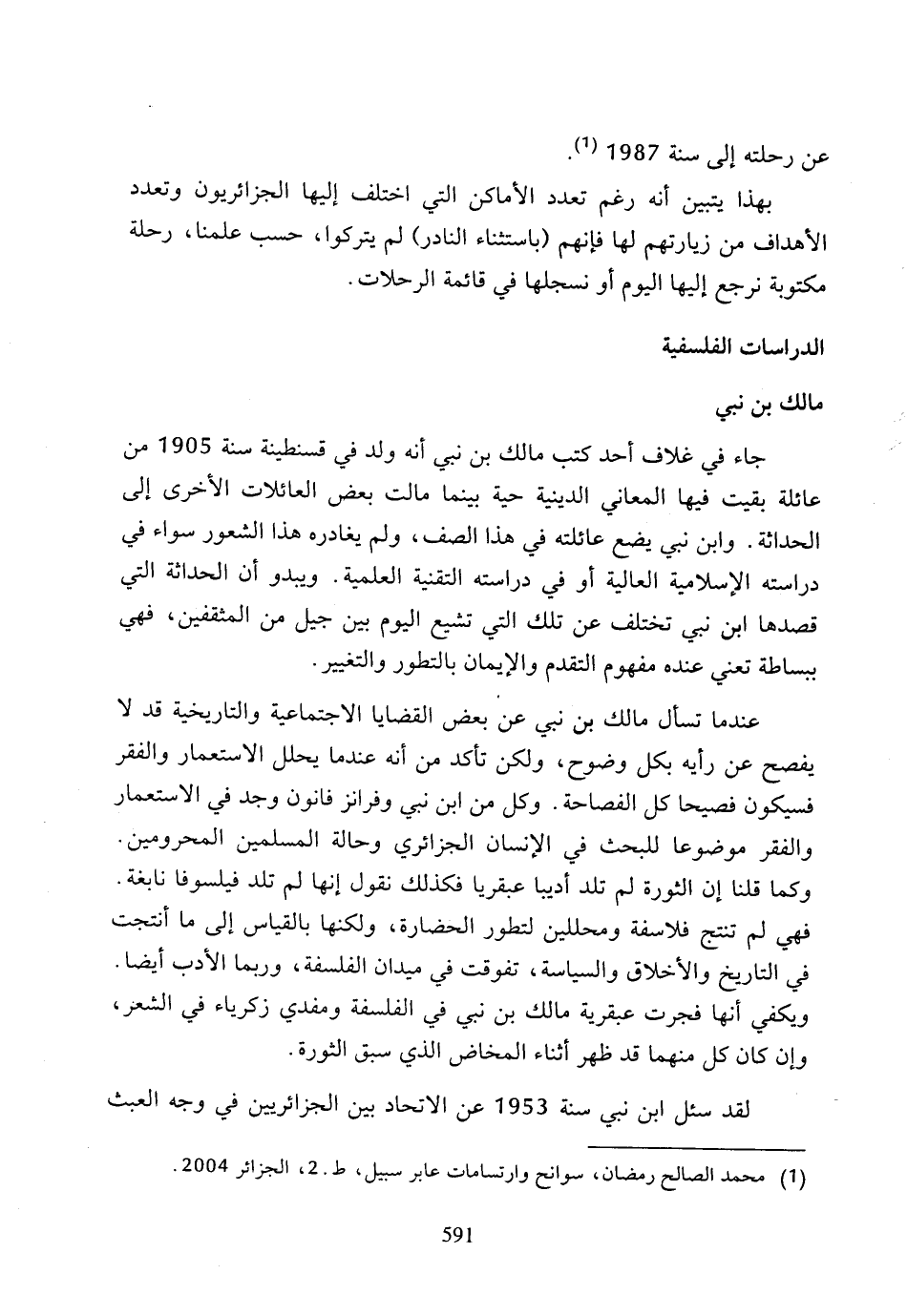 (1) محمد الصالح رمضان، سوانح وارتسامات عابر سبيل، ط، 2، الجزائر 2004.