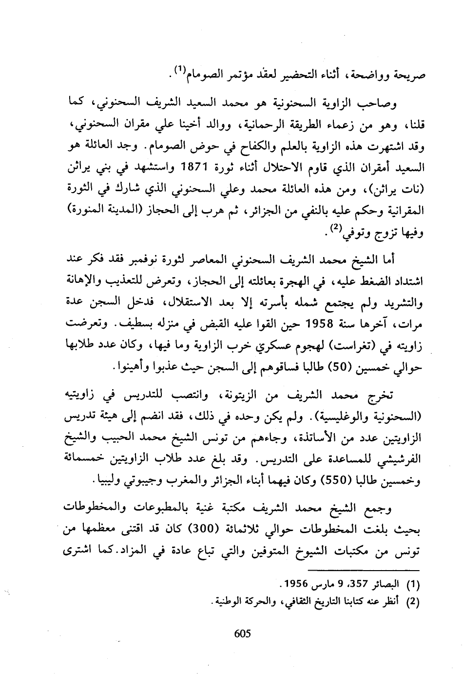 (2) انظر عنه كتابنا التاريخ الثقافي، والحركة الوطنية.