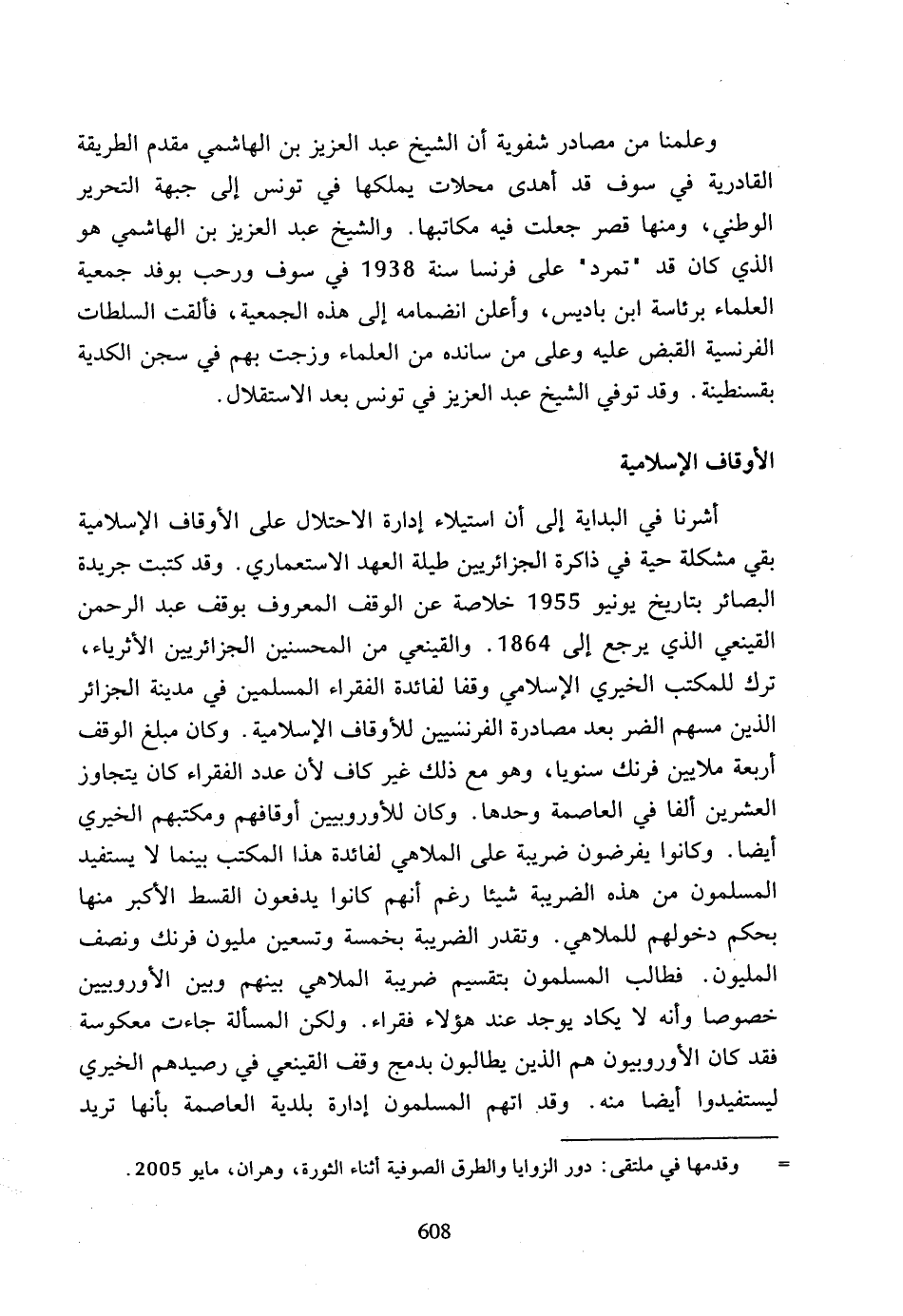 = وقدمها في ملتقى: دور الزوايا والطرق الصوفية أثناء الثورة، وهران، مايو 2005.