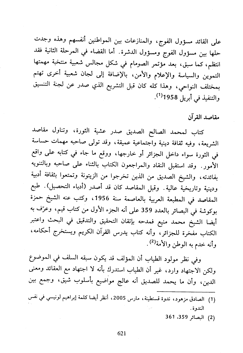 (1) الصادق مزهود، ندوة قسنطينة، مارس 2005، أنظر أيضا كلمة إبراهيم لونيسي في نفس الندوة.