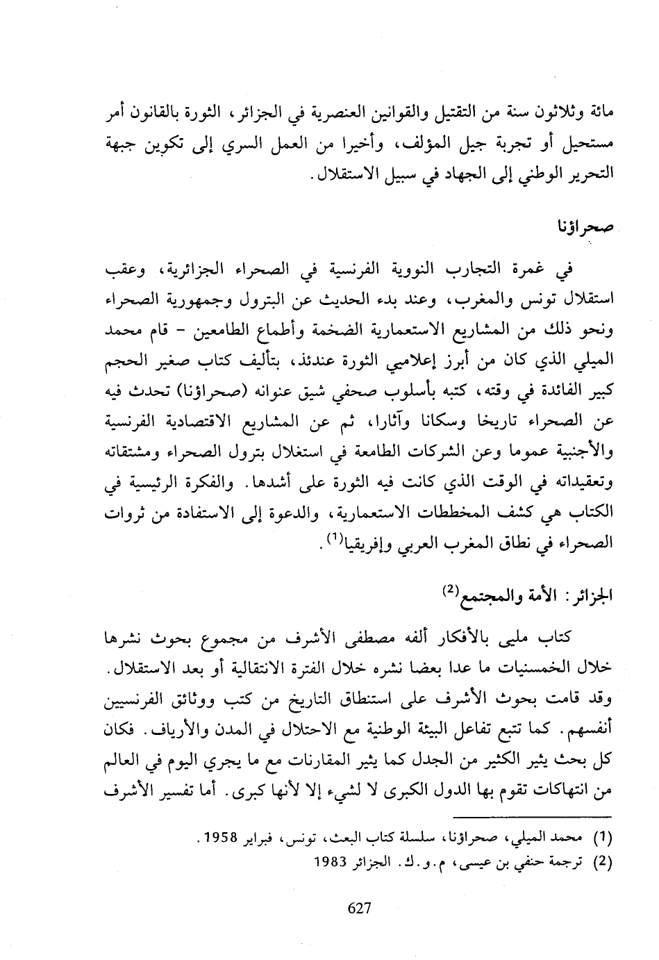 (1) محمد الميلي، صحراؤنا، سلسلة كتاب البعث، تونس، فبراير 1958.