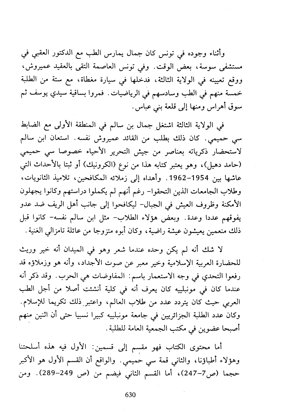 في الولاية الثالثة اشتغل جمال بن سالم في المنطقة الأولى مع الضابط سي حميمي، كان ذلك بطلب من القائد عميروش نفسه، استعان ابن سالم لاستحضار ذكرياته بعناصر من جيش التحرير الأحياء خصوصا سي حميمي (حامد دهيل)، وهو يعتبر كتابه هذا من نوع (الكرونيك) أو ثبتا بالأحداث التي عاشها بين 1954 - 1962، وأهداه إلى زملائه المكافحين، تلاميذ الثانويات، وطلاب الجامعات الذين التحقوا - رغم أنهم لم يكملوا دراستهم وكانوا يجهلون الأمكنة وظروف العيش في الجبال - ليكافحوا إلى جانب أهل الريف ضد عدو يفوقهم عددا وعدة، وبعض هؤلاء الطلاب - مثل ابن سالم نفسه - كانوا قبل ذلك منعمين يعيشون عيشة راضية، وكان أبوه متزوجا من عائلة تامزالي الغنية.