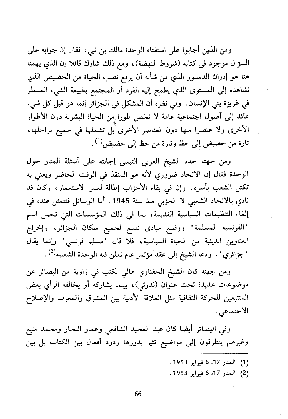 (2) المنار 17، 6 فبراير 1953.