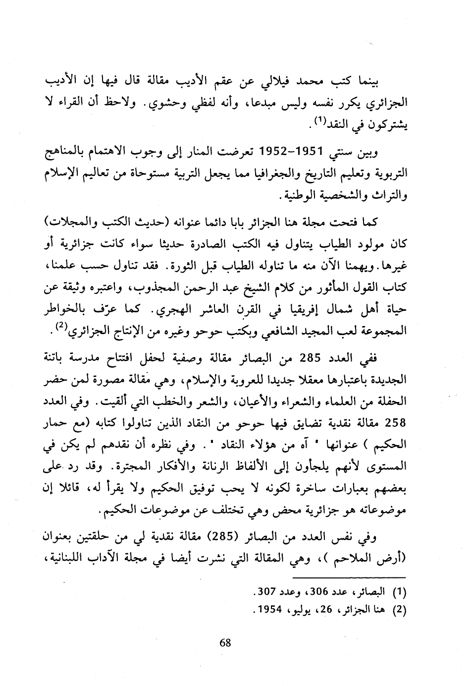(1) البصائر، عدد 306، وعدد 307.