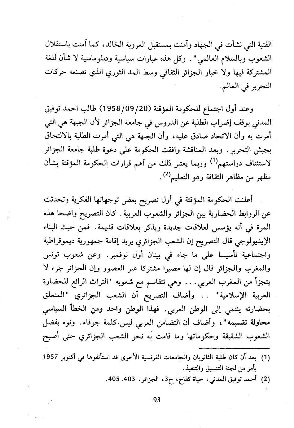 (2) أحمد توفيق المدني، حياة كفاح، ج 3، الجزائر، 403، 405.