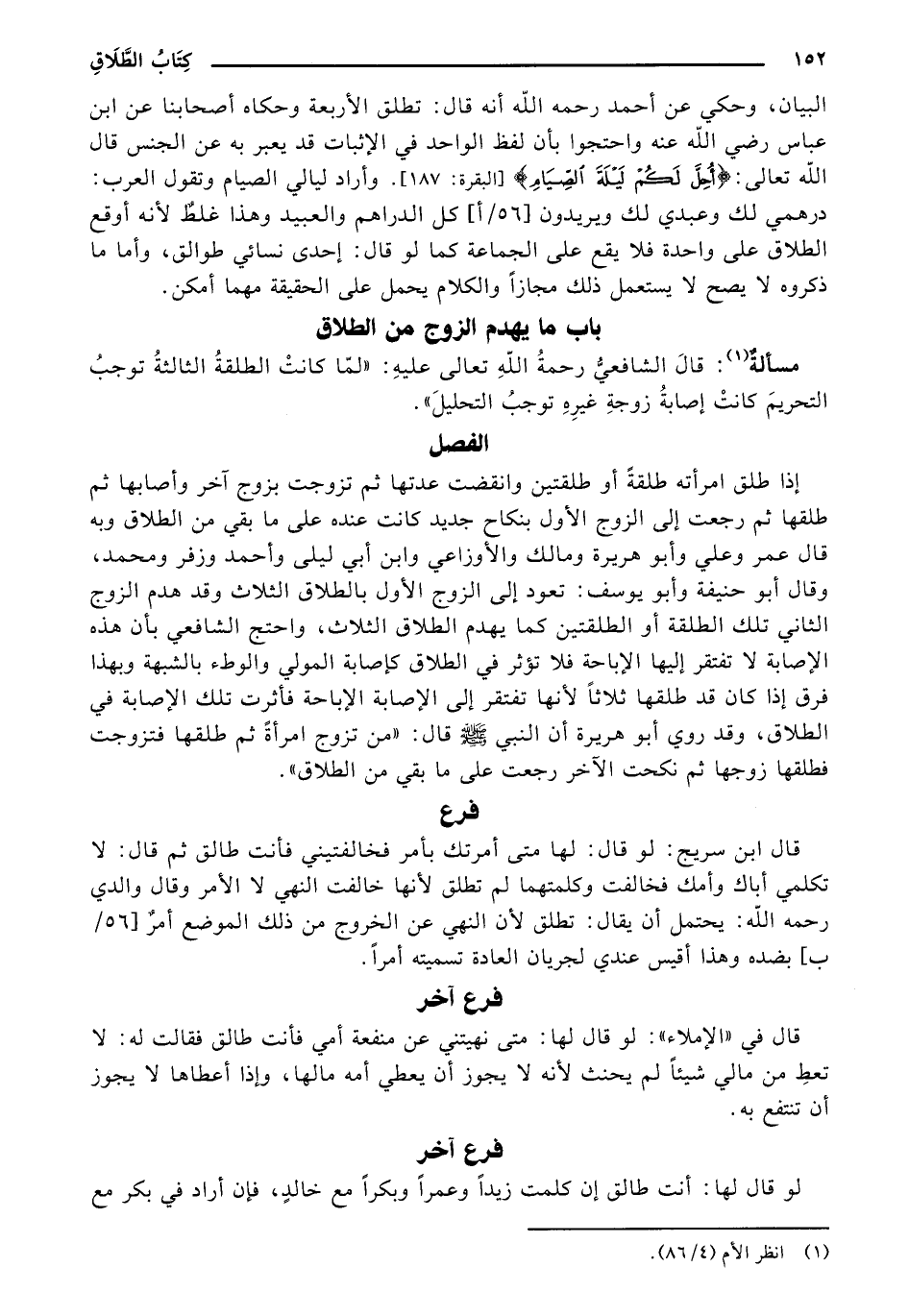 مسألة: قالَ الشافعيُّ رحمةُ اللهِ تعالى عليهِ: "لمّا كانتْ الطلقةُ الثالثةُ توجبُ التحريمَ كانتْ إصابةُ زوجةِ غيرهِ توجبُ التحليلَ".