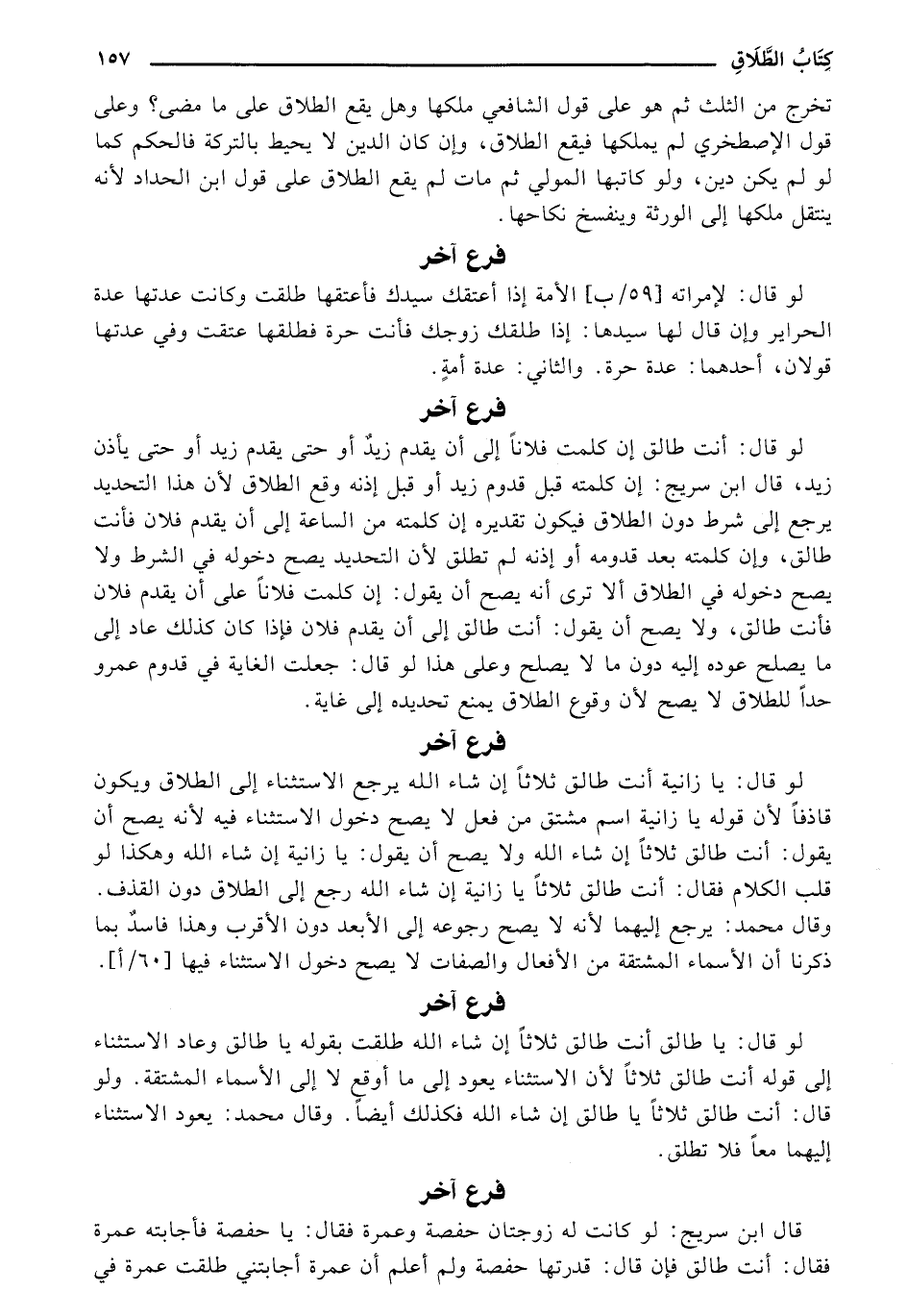 لو قال: يا طالق أنت طالق ثلاثًا بقوله يا طالق وعاد الاستثناء إلى قوله أنت طالق ثلاثًا لأن الاستثناء يعود إلى ما أوقع لا إلى الأسماء المشتقة. ولو قال: أنت طالق ثلاثًا يا طالق إن شاء الله فكذلك أيضًا. وقال محمد: يعود الاستثناء إليهما معًا فلا تطلق.