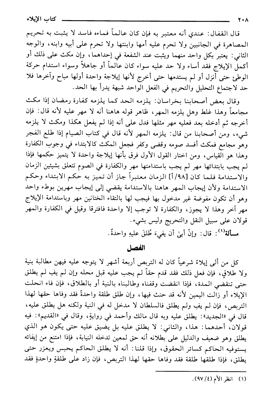 كل من إلى ايلاء شرعيا كان له التربص أربعة أشهر لا يتوجه عليه فيهن مطالبة بنية ولا طلاق، فان فعل ذلك فقد قدم حقا لم يجب عليه قبل محله وان لم يف لم يطلق حتى تنقضي المدة، فإذا انقضت وقفناه وطالبنا بالنية أو بالطلاق، فان فاء انحلت الايلاء أو زالت اليمين لأنه قد حنث فيها، وأن طلق طلقة واحدة فقد وفاها حقها لهذا التربص، فان لم يف ولم يطلق فالسلطان لا مدخل له في النية ولكنه هل يطلق عليه، قال في "الجديد": يطلق عليه وبه قال مالك وأحمد في رواية، وقال في "القديم": فيه قولان، أحدهما: هذا، والثاني: لا يطلق عليه بل يضيق عليه حتى يكون هو الذي يطلق وهو ضعيف والدليل على بطلانه أنه حق لمعين تدخله النيابة، فإذا امتنع من إيفائه يستوفيه الحاكم كسائر الحقوق، وإذا قلنا: أنه لا يطلق الحاكم يحبس ويعزر حتى يطلق، فإذا طلقها طلقة فقد وفاها حقها لهذا التربص، فان زاد على طلقة واحدة فقد