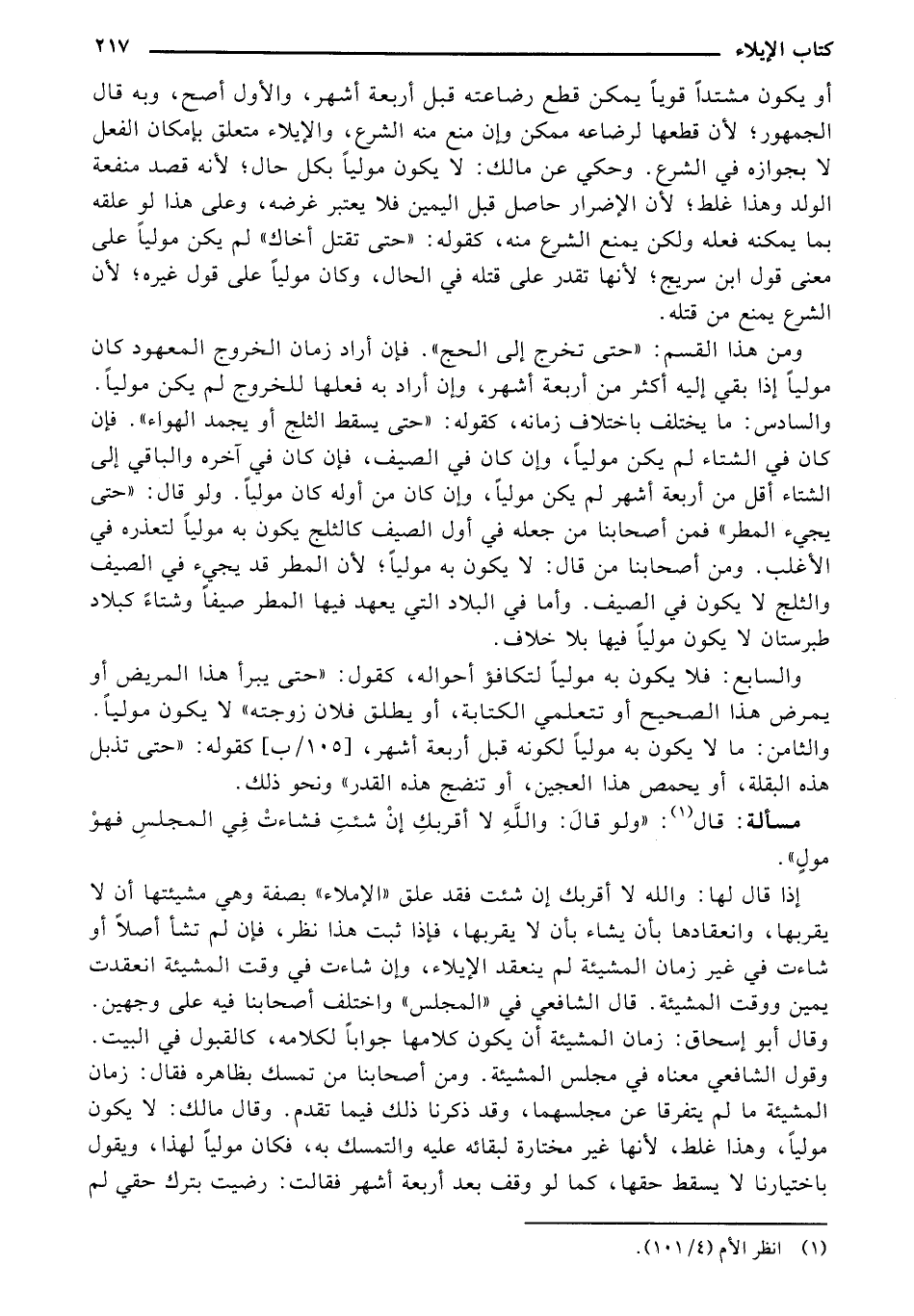 والسابع: فلا يكون به موليًا لتكافؤ أحواله، كقول: "حتى يبرأ هذا المريض أو يمرض هذا الصحيح أو تتعلمي الكتابة، أو يطلق فلان زوجته" لا يكون موليًا. والثامن: ما لا يكون به موليًا لكونه قبل أربعة أشهر، [105/ب] كقوله: "حتى تذبل هذه البقلة، أو يحمص هذا العجين، أو تنضج هذه القدر" ونحو ذلك.