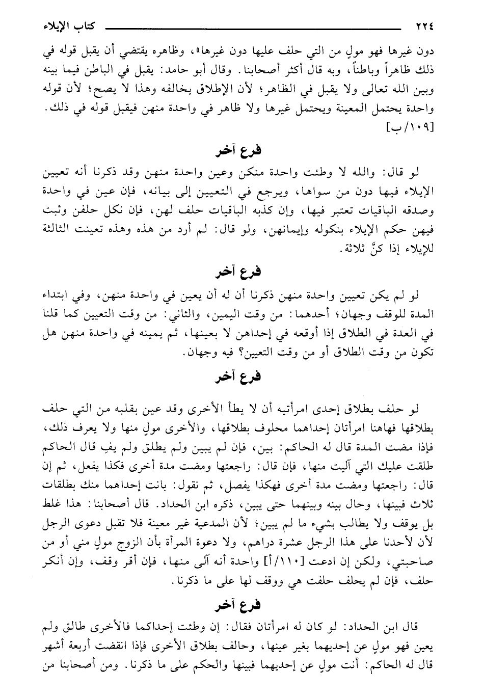 لو حلف بطلاق إحدى امرأتيه أن لا يطأ الأخرى وقد عين بقلبه من التي حلف بطلاقها فهاهنا امرأتان إحداهما محلوف بطلاقها، والأخرى مولٍ منها ولا يعرف ذلك، فإذا مضت المدة قال له الحاكم: بين، فإن لم يبين ولم يطلق ولم يفِ قال الحاكم طلقت عليك التي آليت منها، فإن قال: راجعتها ومضت مدة أخرى فكذا يفعل، ثم إن قال راجعتها ومضت مدة أخرى فهكذا يفصل، ثم نقول: بانت إحداهما منك بطلقات ثلاث فبينها، وحال بينه وبينهما حين يبين، ذكره ابن الحداد. قال أصحابنا: هذا غلط بل يوقف ولا يطالب بشيء ما لم يبين؛ لأن المدعية غير معينة فلا تقبل دعوى الرجل لأن لأحدنا على هذا الرجل عشرة دراهم، ولا دعوة المرأة بأن الزوج مولٍ مني أو من صاحبتي، ولكن إن ادعت [110/أ] واحدة أنه آلي منها، فإن أقر وقف، وإن أنكر حلف، فإن لم يحلف حلفت هي ووقف لها على ما ذكرنا.