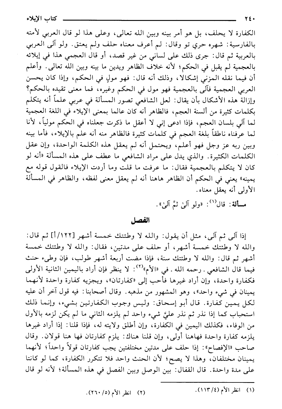 الكفارة لا يحلف، بل هو أمر بينه وبين الله تعالى، وعلى هذا لو قال العربي لأمته بالفارسية: شهره حري تو وقال: لم أعرف معناه حلف ولم يعتق. ولو آلي العربي بالعربية ثم قال: جرى ذلك على لساني من غير قصد، أو قال العجمي هذا في إيلائه بالعجمية لم يقبل في الحكم؛ لأنه خلاف الظاهر ويدين ما بينه وبين الله تعالى. وأعلم أن فيما نقله المزني إشكالا، وذلك أنه قال: فهو مولٍ في الحكم، وإذا كان يحسن العربي العجمية فآلي بالعجمية فهو مول في الحكم وغيره، فما معنى تقيده بالحكم؟ وإزالة هذه الأشكال بأن يقال: لعل الشافعي تصور المسألة في عربي علمًا أنه يتكلم بكلمات كثيرة من ألسنة العجم، فالظاهر أنه كان عالماً بمعنى الإيلاء في اللغة العجمية لما آلي بلسان العجم، فإذا ادعى إني لا أعقل ما ذكرت جعلناه في الحكم موليًا، لأنا لما عرفناه ناطقًا بلغة العجم في كلمات كثيرة فالظاهر منه أنه علم بالإيلاء، فأما بينه وبين ربه عز وجل فهو أعلم، ويحتمل أنه لم يعقل هذه الكلمة الواحدة، وإن عقل الكلمات الكثيرة. والذي يدل على مراد الشافعي ما عطف على هذه المسألة "أنه لو كان لا يتكلم بالعجمية فقال: ما عرفت ما قلت وما أردت الإيلاء فالقول قوله مع يمينه" يعني في الحكم أن الظاهر هاهنا أنه لم يعقل معنى لفظه، والظاهر في المسألة الأولى أنه يعقل معناه.