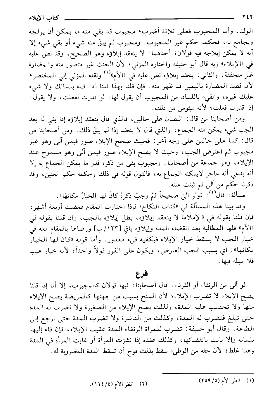 الولد. وأما المجبوب فعلى ثلاثة أضرب؛ مجبوب قد بقي منه ما يمكن أن يولجه ويجامع به، فحكمه حكم غير المجبوب. ومجبوب لم يبقّ منه شيء أو بقي شيء إلا أنه لا يمكن إيلاجه فيه قولان؛ أحدهما: لا ينعقد إيلاؤه وهو الصحيح، وقد نص عليه في "الإملاء" وبه قال أبو حنيفة واختاره المزني؛ لأن الحنث غير متصور منه والمضارة غير متحققة. والثاني: ينعقد إيلاؤه نص عليه في "الأم" ونقله المزني إلى المختصر؛ لأن قصد المضارة باليمين قد ظهر منه. فإن قلنا بهذا قلنا له: فء بلسانك ولا شيء عليك غيره، والفيء باللسان من المجبوب أن يقول لها: لو قدرت لفعلت، ولا يقول: إذا قدرت فعلت؛ لأنه ميئوس من ذلك.