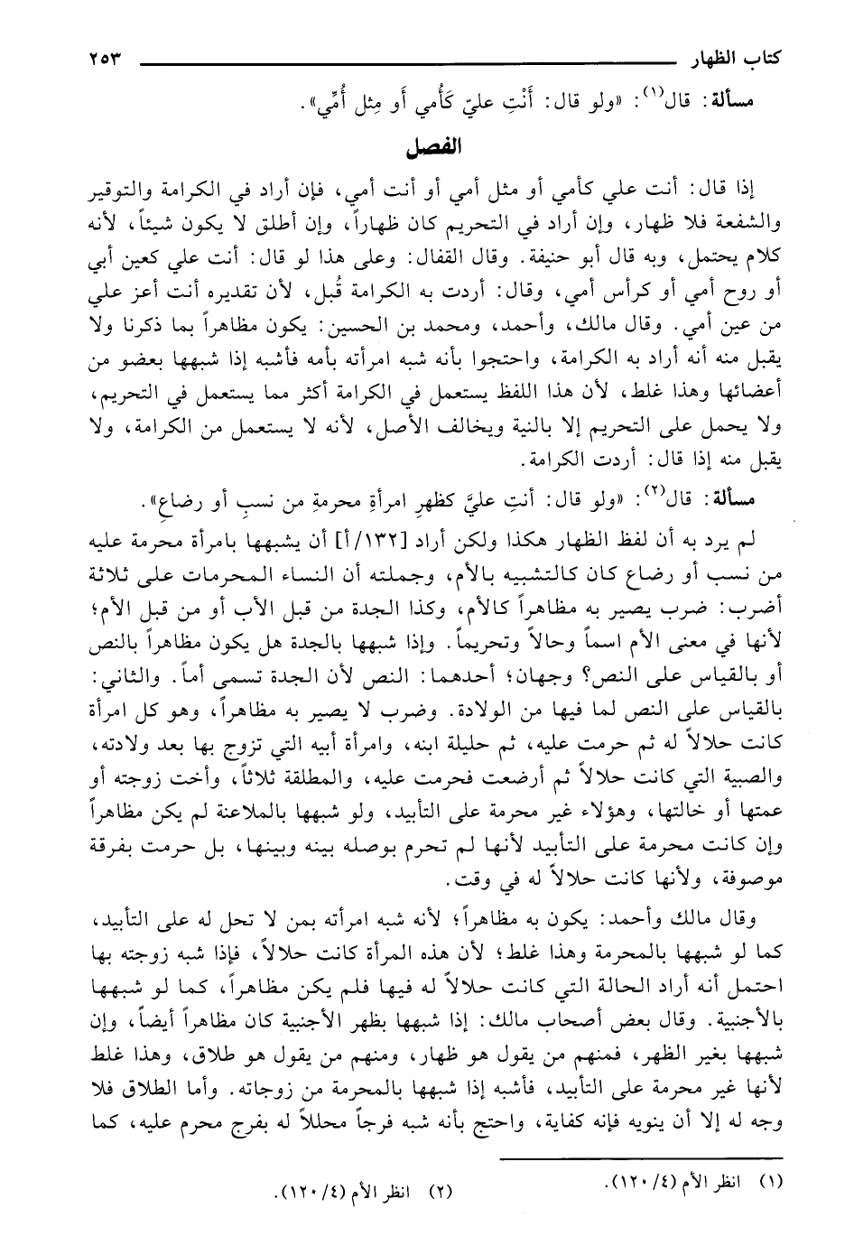 مسألة: قال: "ولو قال: أنْتِ عليّ كَأُمي أو مِثل أُمِّي".