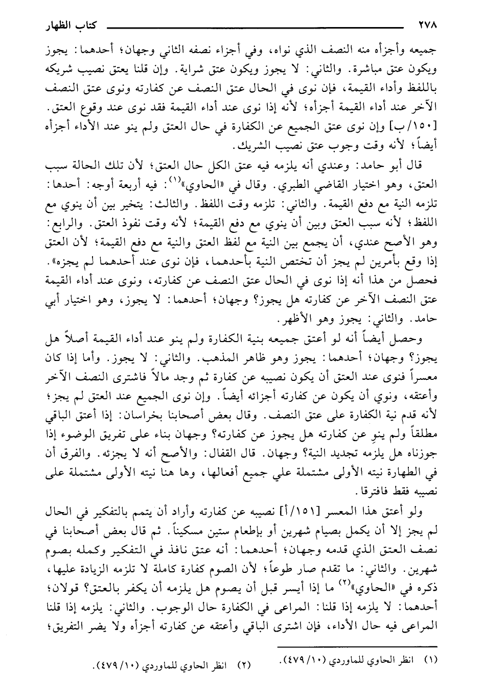 قال أبو حامد: وعندي انه يلزمه فيه عتق الكل حال العتق؛ لأن تلك الحالة سبب العتق، وهو اختيار القاضي الطبري. وقال في "الحاوي": فيه أربعة أوجه: أحدها: تلزمه النية مع دفع القيمة. والثاني: تلزمه وقت اللفظ. والثالث: يتخير بين أن ينوي مع اللفظ؛ لأنه سبب العتق وبين أن ينوي مع دفع القيمة؛ لأنه وقت نفوذ العتق. والرابع: وهو الأصح عندي، ان يجمع بين النية مع لفظ العتق والنية مع دفع القيمة؛ لأن العتق إذا وقع بأمرين لم يجز أن تختص النية بأحدهما، فإن نوى عند أحدهما لم يجزه". فحصل من هذا أنه إذا نوى في الحال عتق النصف عن كفارته، ونوى عند أداء القيمة عتق النصف الآخر عن كفارته هل يجوز؟ وجهان؛ أحدهما: لا يجوز، وهو اختيار أبي حامد. والثاني: يجوز وهو الأظهر.