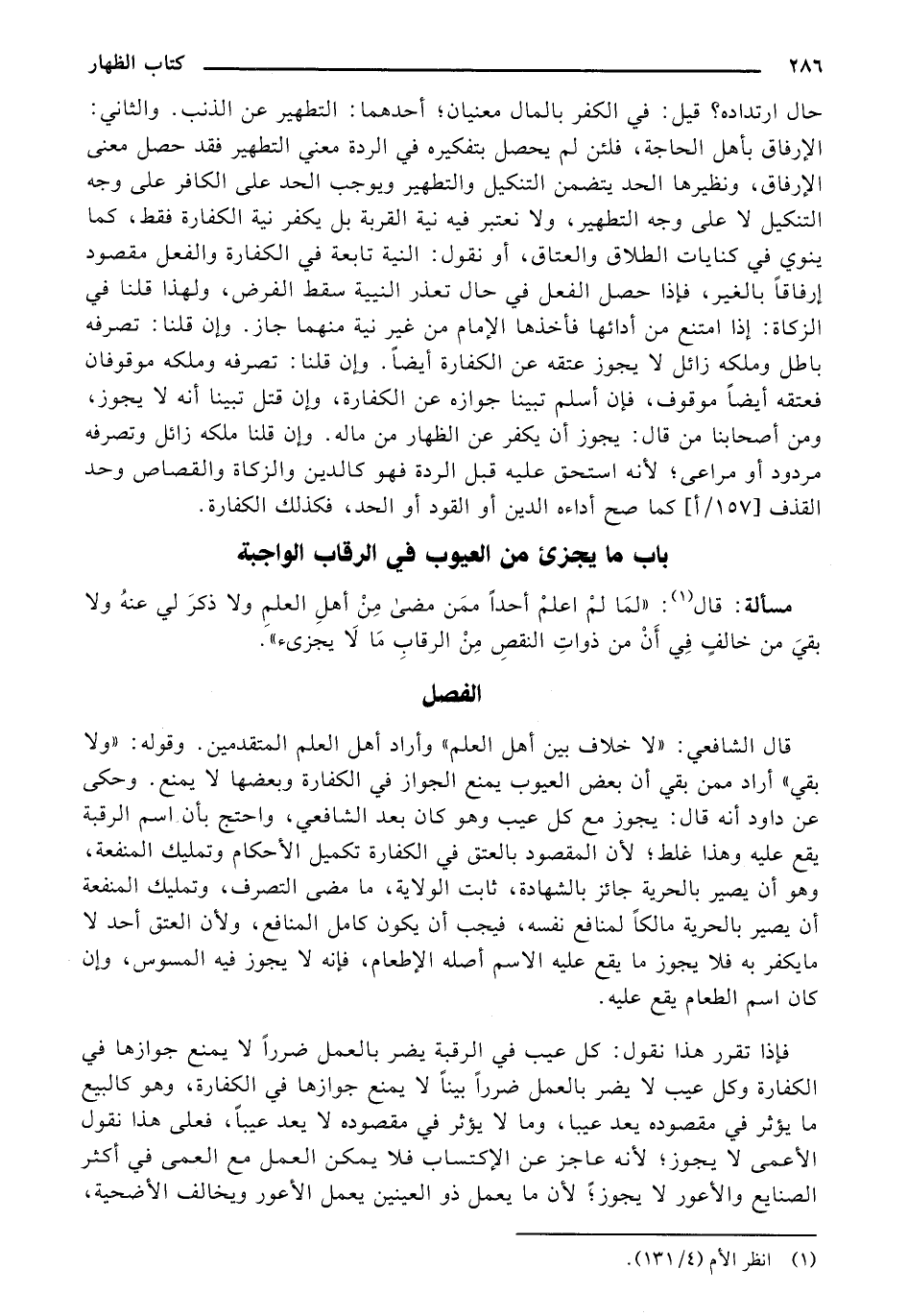 مسألة: قال "لمَا لمْ اعلمْ أحدًا ممَن مضى مِنْ أهلِ العلمِ ولا ذكرَ لي عنهُ ولا بقيَ من خالفٍ فِي أَنْ من ذواتِ النقصِ مِنْ الرقابِ مَا لا يجزئ".