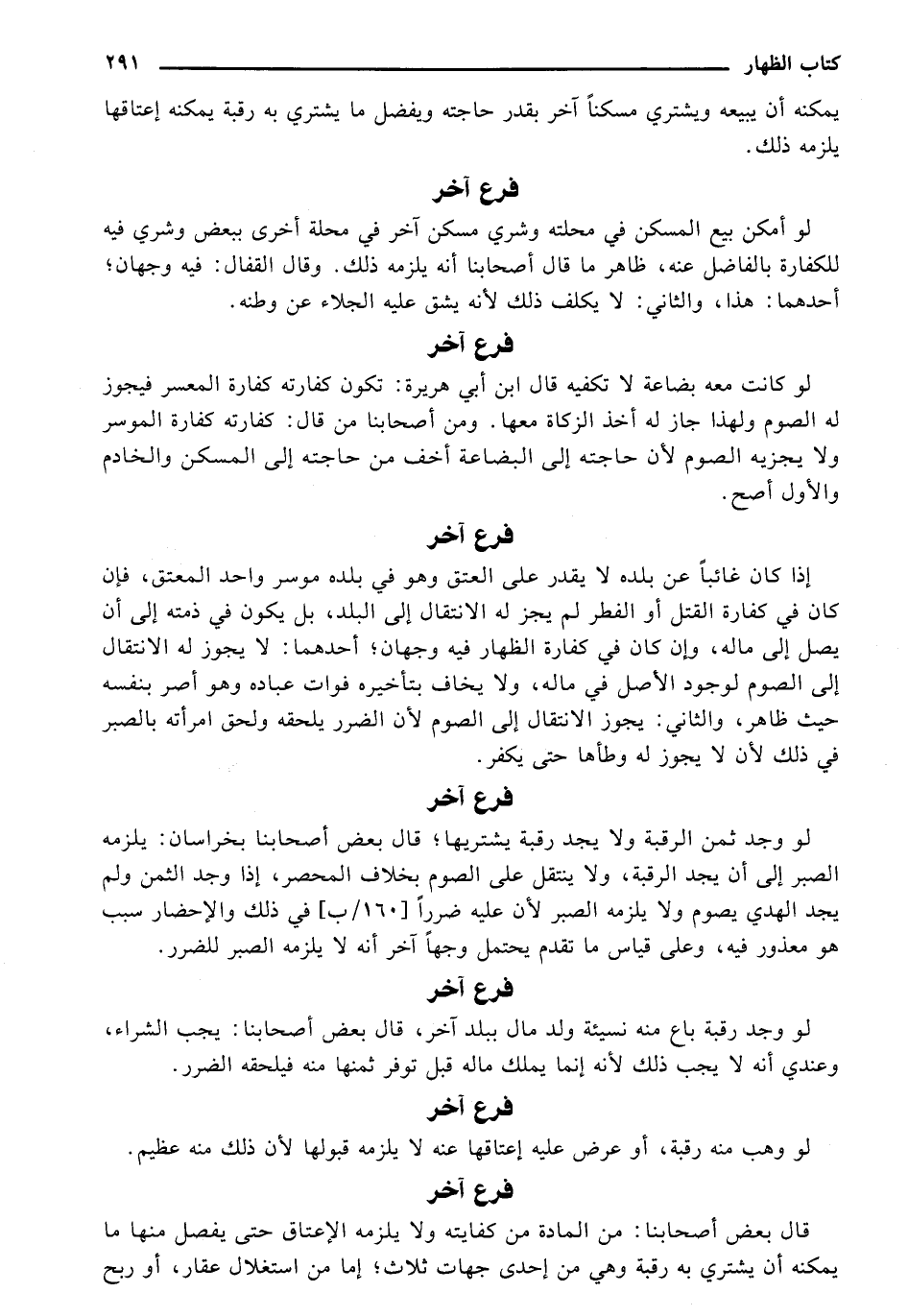 لو وجد ثمن الرقبة ولا يجد رقبة يشتريها؛ قال بعض أصحابنا بخراسان: يلزمه الصبر إلى أن يجد الرقبة، ولا ينتقل على الصوم بخلاف المحصر، إذا وجد الثمن ولم يجد الهدي يصوم ولا يلزمه الصبر لأن عليه ضررًا [160/ ب] في ذلك والإحضار سبب هو معذور فيه، وعلى قياس ما تقدم يحتمل وجهًا آخر أنه لا يلزمه الصبر للضرر.