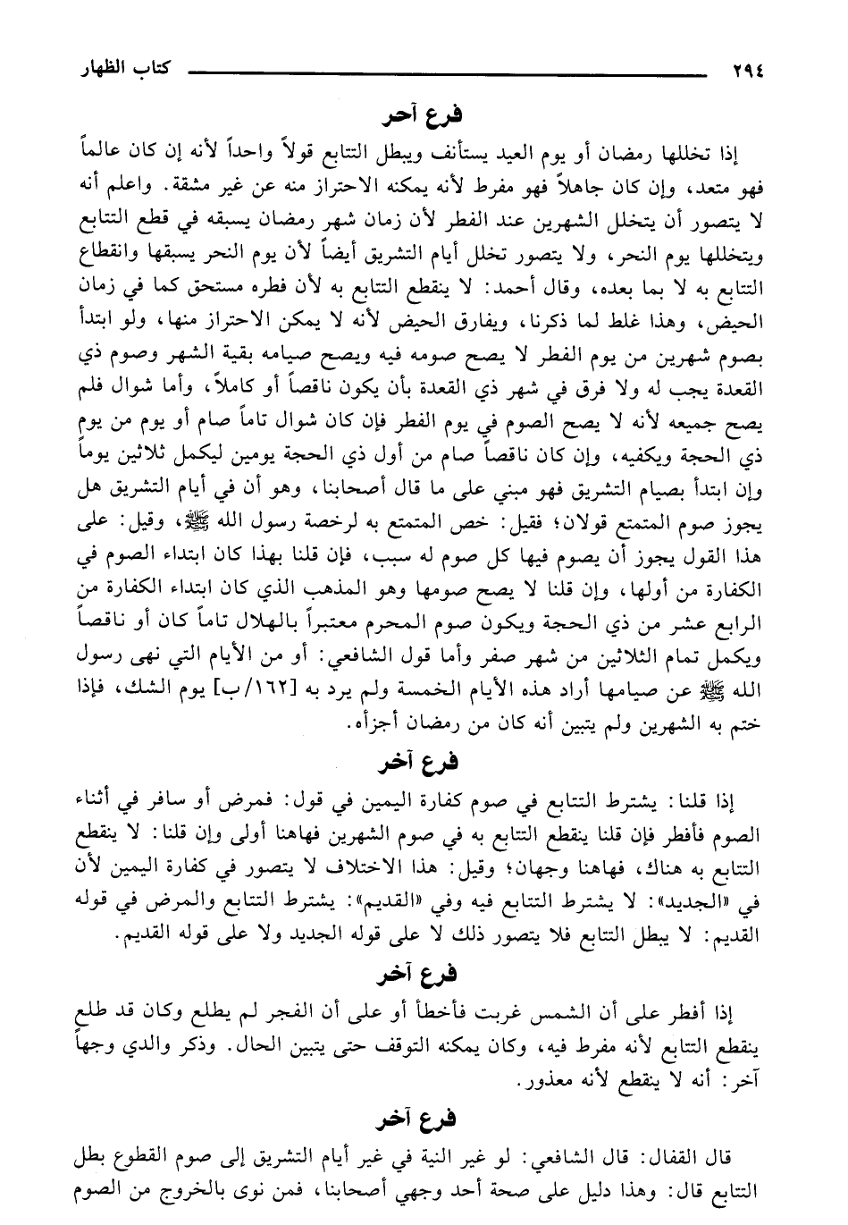 إذا تخللها رمضان أو يوم العيد يستأنف ويبطل التتابع قولًا واحدًا لأنه إن كان عالمًا فهو متعد، وإن كان جاهلًا فهو مفرط لأنه يمكنه الاحتراز منه عن غير مشقة. واعلم أنه لا يتصور أن يتخلل الشهرين عند الفطر لأن زمان شهر رمضان يسبقه في قطع التتابع ويتخللها يوم النحر، ولا يتصور تخلل أيام التشريق أيضًا لأن يوم النحر يسبقها وانقطاع التتابع به لا بما بعده، وقال أحمد: لا ينقطع التتابع به لأن فطره مستحق كما في زمان الحيق، وهذا غلط لما ذكرنا، ويفارق الحيض لأنه لا يمكن الاحتراز منها، ولو ابتدأ بصوم شهرين من يوم الفطر لا يصح صومه فيه ويصح صيامه بقية الشهر وصوم ذي القعدة يجب له ولا فرق في شهر ذي القعدة بأن يكون ناقصًا أو كاملًا، وأما شوال فلم يصح جميعه لأنه لا يصح الصوم في يوم الفطر فإن كان شوال تامًا صام أو يوم من يوم ذي الحجة ويكفيه، وإن كان ناقصًا صام من أول ذي الحجة يومين ليكمل ثلاثين يومًا وإن ابتدأ بصيام التشريق فهو مبني على ما قال أصحابنا، وهو أن في أيام التشريق هل يجوز صوم المتمنع قولان؛ فقيل: خص المتمتع به لرخصة رسول الله صلى الله عليه وسلم، وقيل: على هذا القول يجوز أن يصوم فيها كل صوم له سبب، فإن قلنا بهذا كان ابتداء الصوم في الكفارة من أولها، وإن قلنا لا يصح صومها وهو المذهب الذي كان ابتداء الكفارة من الرابع عشر من ذي الحجة ويكون صوم المحرم معتبرًا بالهلال تامًا كان أو ناقصًا ويكمل تمام الثلاثين من شهر صفر وأما قول الشافعي: أو من الأيام التي نهى رسول الله صلى الله عليه وسلم عن صيامها أراد هذه الأيام الخمسة ولم يرد به [162/ ب] يوم الشك، فإذا ختم به الشهرين ولم يتبين أنه كان من رمضان أجزأه.
