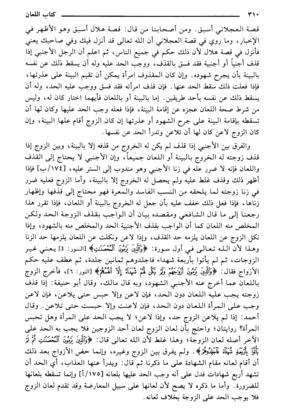 قصة العجلاني أسبق. ومن أصحابنا من قال: قصة هلال أسبق وهو الأظهر في الإخبار، وما روي في قصة العجلاني أن الله تعالى قد أنزل فيك وفي صاحبك يعني فأنزل في قصة هلال لأن ذلك حكم في جميع الناس، ثم اعلم أن الرجل الأجنبي إذا قذف أجنبيًا أو أجنبية فقد فسق بالقذف، ووجب الحد عليه وله أن يسقط ذلك عن نفسه بالبينة بأن يجرح شهوده. وإن كان المقذوف امرأة يمكن أن تقيم البينة على عذرتها، فإذا فعلت ذلك سقط الحد عنها. فإن قذف امرأته فقد فسق ووجب عليه الحد، وله أن يسقط ذلك عن نفسه بأحد طريقين. إما بالبينة أو باللعان فأيهما اختار كان له، وليس من شرط صحة اللعان عجزه عن إقامة البينة، فإذا فعله وجب الحد عليها وكان لها أن تسقطه بإقامة البينة على جرح الشهود أو عذرتها إن كان الزوج أقام عليها البينة، وإن كان الزوج لاعن كان لها أن تلاعن وتدرأ الحد عن نفسها.
