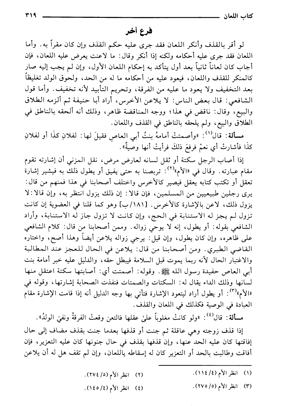 لو أقر بالقذف وأنكر اللعان فقد جرى عليه حكم القذف وإن كان مقرًا به. وأما اللعان فقد جرى عليه أحكامه ولكنه إذا أنكر وقال: ما لا عنت يعرض عليه اللعان، فإن أجاب كان لعانًا ثانيًا بعد أول يتأكد به إحكام اللعان الأول، وإن لم يجب إليه صار كالمنكر للقذف واللعان، فيعود عليه من أحكامه ما له من الحد، ولحوق الولد تغليظًا بعد التخفيف ولا يعود ما عليه من الفرقة، وتحريم التأبيد لأنه تخفيف. وأما قول الشافعي: قال بعض الناس: لا يلاعن الأخرس، أراد أبا حنيفة ثم ألزمه الطلاق والبيع، وقال: ناقض في هذا؛ ووجه المناقضة ظاهر، وذلك أنه ألحقه بالناطق في الطلاق والبيع، ولم يلحقه بالناطق في القذف واللعان.