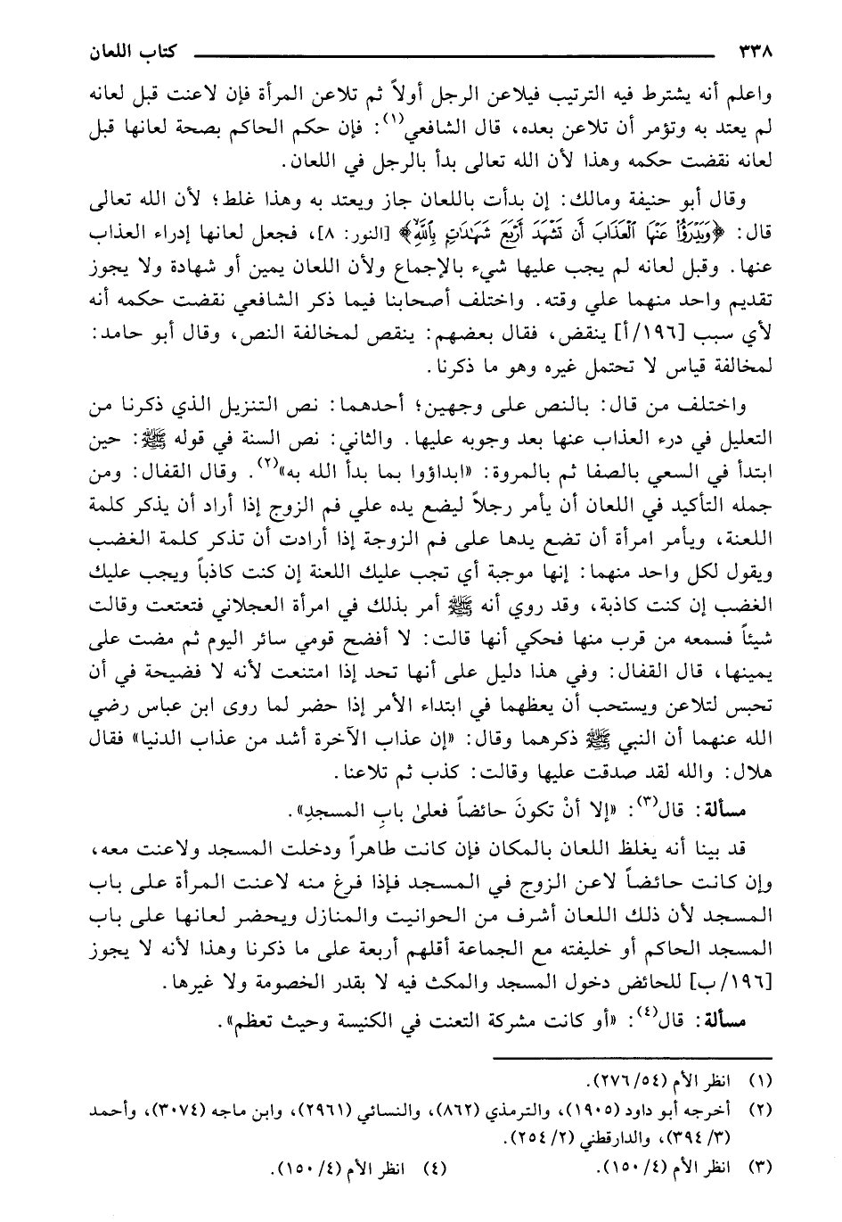 واعلم أنه يشترط فيه الترتيب فيلاعن الرجل أولاً ثم تلاعن المرأة فإن لاعنت قبل لعانه لم يعتد به وتؤمر أن تلاعن بعده، قال الشافعي: فإن حكم الحاكم بصحة لعانها قبل لعانه نقضت حكمه وهذا لأن الله تعالى بدأ بالرجل في اللعان.