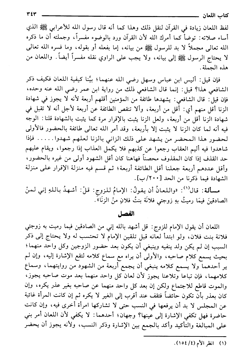 فإن قيل: أليس ابن عباس وسهل رضي الله عنهما؛ بيَّنا كيفية اللعان فكيف ذكر الشافعي هذا؟ قيل: إنما قال الشافعي ذلك من رواية ابن عمر رضي الله عنه وحده، فإن قيل: قال الشافعي: يشهدها طائفة من المؤمنين أقلهم أربعة لأنه لا يجوز في شهادة الزنا أقل منهم أي: أقل من أربعة، وألا تنقص الطائفة عن أربعة لأجل أنه لا تقبل في شهادة الزنا أقل من أربعة، ولعل الزنا يثبت بالإقرار مرة كما يثبت بالشهادة قلنا: الوجه فيه أنه لما كان الزنا لا يثبت إلا بأربعة، وقد أمر الله تعالى طائفة بالحضور فالأولى لحضور هذا المحضر من يشهد على ذلك الزاني بالزنا لعلهم شهدوا ... فإذا شاهدوا فيه أليم العقاب رجعوا عن كذبهم فلا يكمل العذاب إذا رجعوا، ويقام عليهم حد القذف إذا كان المقذوف محصنًا فهاهنا كان أقل الشهود أولى من غيره بالحضور، وأقل عددهم أربعة جعلنا أقل الطائفة أربعة؛ ثم قسم فيه منزلة الإقرار على منزلة الشهادة فيما ذكرنا من الحد [200/ ب].