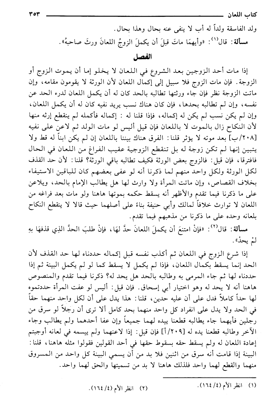 إذا شرع الزوج في اللعان ثم أكذب نفسه قبل إكماله حددناه لها حد القذف لأن الحد إنما يسقط بكمال اللعان، فإذا لم يكمل لا يسقط كما لو لم يكمل البينة ثم إذا حددناه لها ثم جاء المرمى به وطالبه بالحد هل يحد له؟ ذكرنا فيما تقدم والمنصوص هاهنا أنه لا يحد له وهو اختيار أبي إسحاق. فإن قيل: أليس لو عفت المرأة حددتموه لها حداً كاملاً فدل على أن عليه حدين، قلنا: هذا يدل على أن لكل واحد منهما حقًأ في الحد ولا يدل على انفراد كل واحد منهما بحد كامل ألا ترى أن رجلاً لو سرق من رجلين فأيهما جاء يطالبه قطعنا ييده لهما جميعًا وإن عفا أحدهما ولم يطالب وجاء الآخر وطالبه قطعنا يده له [209/ أ] فإن قيل: إذا لاعنهما ولم ييسمه في لعانه أوجبتم إعادة اللعان له ولم يسقط حقه بسقوط حقها في أحد القولين فقولوا مثله هاهنا، قلنا: البينة إذا قامت أنه سرق من اثنين فلا بد من أن يسمى البينة كل واحد من المسروق منهما والقطع لهما واحد فلذلك هاهنا لا بد من تسميتها والحق لهما واحد.