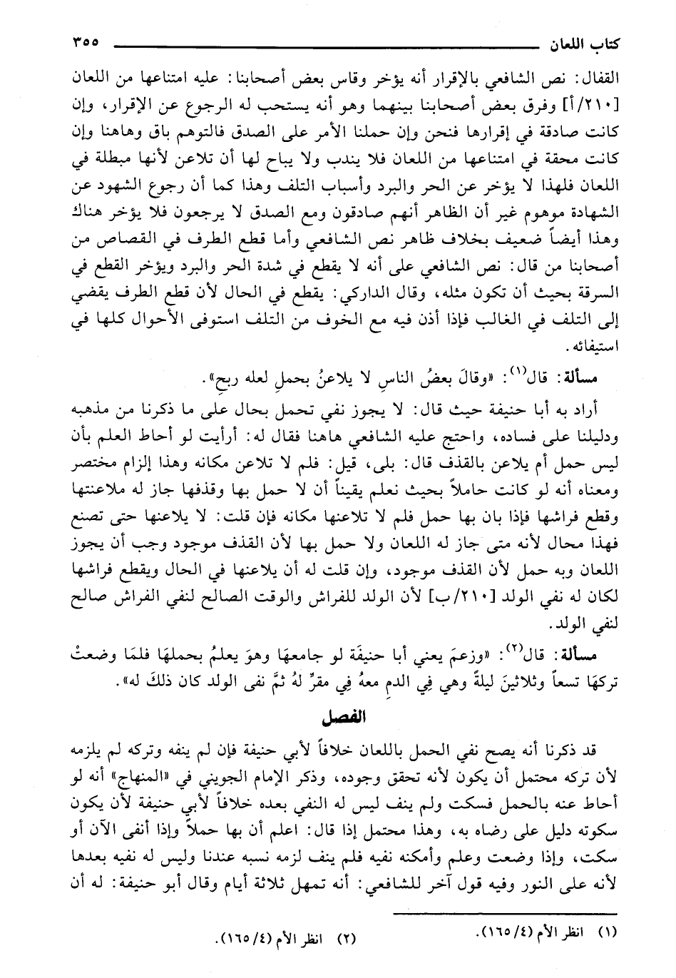 أراد به أبا حنيفة حيث قال: لا يجوز نفي تحمل بحال على ما ذكرنا من مذهبه ودليلنا على فساده، واحتج عليه الشافعي هاهنا فقال له: أرأيت لو أحاط العلم بأن ليس حمل أم يلاعن بالقذف قال: بلى، قيل: فلم لا تلاعن مكانه وهذا إلزام مختصر ومعناه أنه لو كانت حاملاً بحيث نعلم يقينًا أن لا حمل بها وقذفها جاز له ملاعنتها وقطع فراشها فإذا بان لها حمل فلم لا تلاعنها مكانه فإن قلت: لا يلاعنها حتى تصنع فهذا محال لأنه متى جاز له اللعان ولا حمل بها لأن القذف موجود وجب أن يجوز اللعان وبه حمل لأن القذف موجود، وإن قلت له أن يلاعنها في الحال ويقطع فراشها لكان له نفي الولد [210/ ب] لأن الولد للفراش والوقت الصالح لنفي الفراش صالح لنفي الولد.