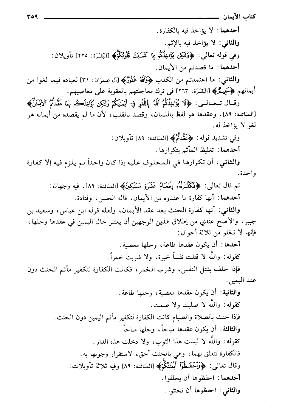 وقال تعالى: {لا يُؤَاخِذُكُمْ اللَّهُ بِاللَّغْوِ فِي أَيْمَانِكُمْ وَلَكِنْ يُؤَاخِذُكُمْ بِمَا عَقَّدْتُمْ الأَيْمَانَ} [المائدة: 89]. وعقدها هو لفظ باللسان، وقصد بالقلب، لأن ما لم يقصده من أيمانه هو لغو لا يؤاخذ له.