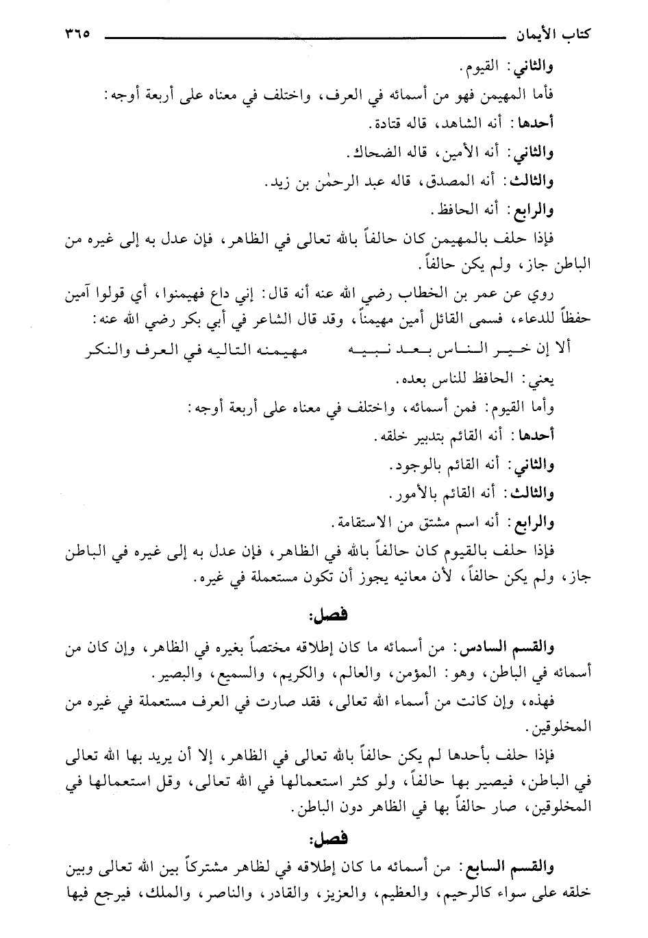 فإذا حلف بالمهيمن كان حالفًا بالله تعالى في الظاهر، فإن عدل به إلى غيره من الباطن جاز، ولم يكن حالفًا.