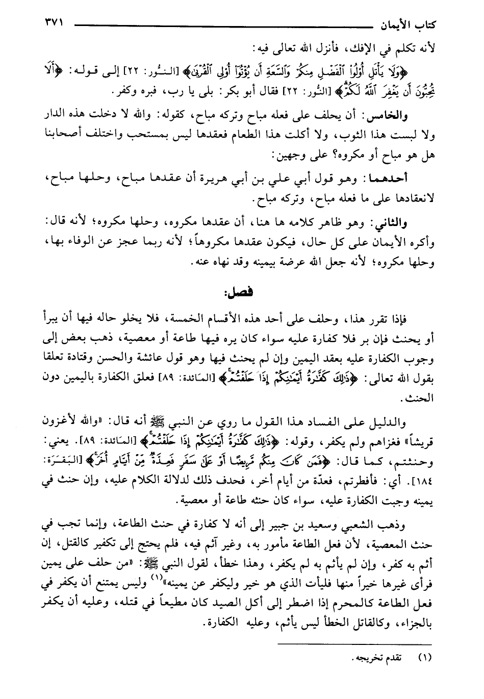 وذهب الشعبي وسعيد بن جبير إلى انه لا كفارة في حنث الطاعة، وإنما تجب في حنث المعصية، لأن فعل الطاعة مأمور به، وغير آثم فيه، فلم يحتج إلى تكفير كالقتل، إن أثم به كفر، وإن لم يأثم به لم يكفر، وهذا خطأ، لقول النبي صلى الله عليه وسلم: "من حلف على يمين فرأى غيرها خيرًا منها فليأت الذي هو خير وليكفر عن يمينه" وليس يمتنع أن يكفر في فعل الطاعة كالمحرم إذا اضطر إلى أكل الصيد كان مطيعًا في قتله، وعليه أن يكفر بالجزاء، وكالقاتل الخطأ ليس يأثم، وعليه الكفارة.