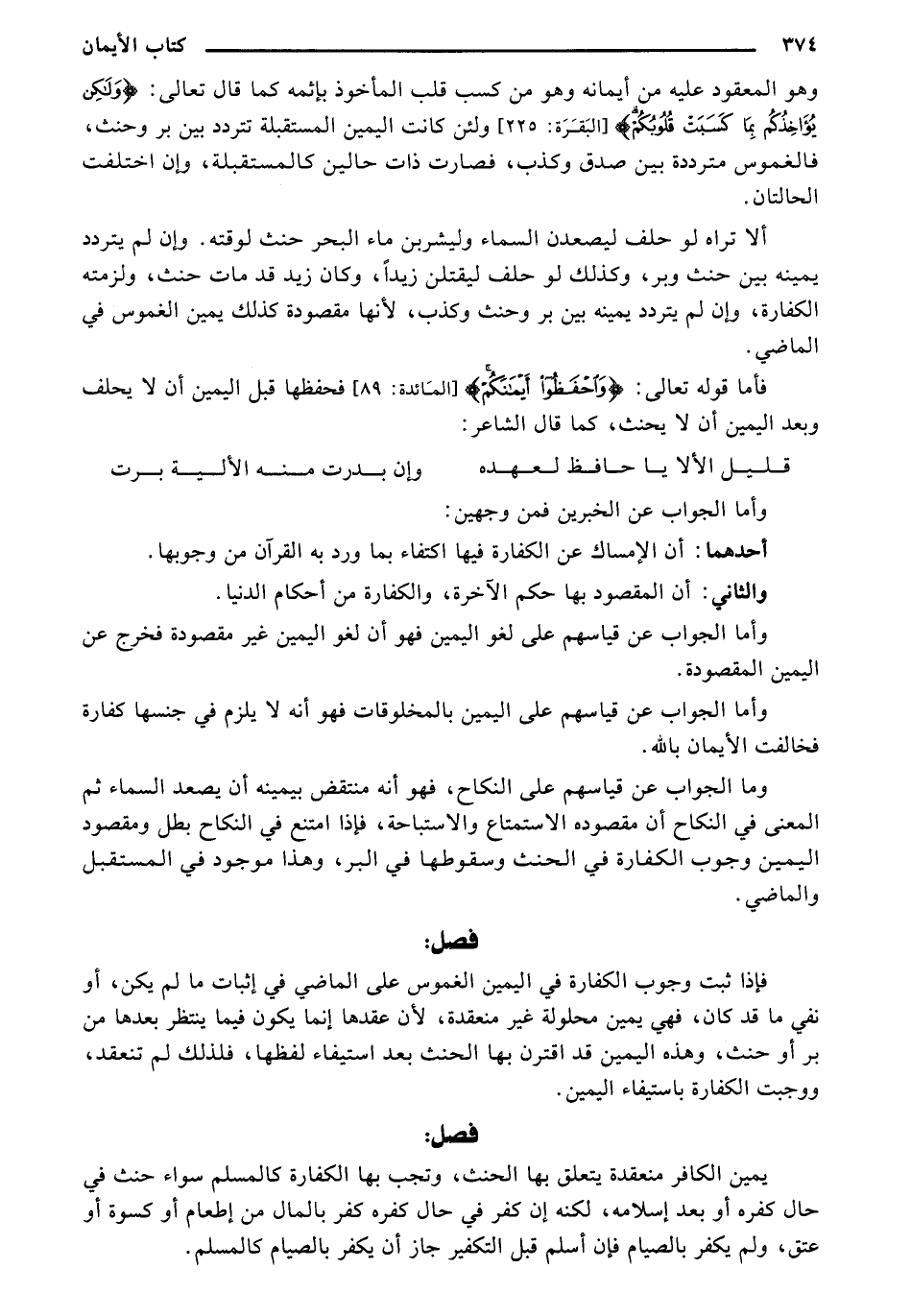 وهو المعقود عليه من أيمانه وهو من كسب قلب المأخوذ بإثمه كما قال تعالى: {ولَكِن يُؤَاخِذُكُم بِمَا كَسَبَتْ قُلُوبُكُمْ} [البقرة:225] ولئن كانت اليمين المستقبلة تتردد بين بر وحنث، فالغموس مترددة بين صدق وكذب، فصارت ذات حالين كالمستقبلة، وغن اختلفت الحالتان.