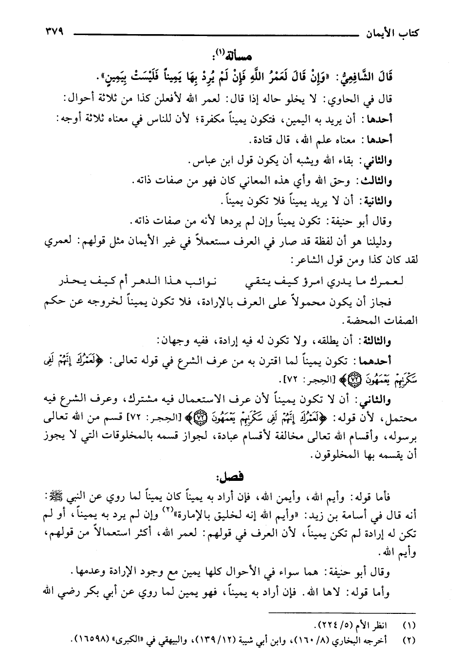 قَالَ الشَّافِعِيُّ: "وَإِنْ قَالَ لَعَمْرُ اللَّهِ فَإِنْ لَمْ يُرِدْ بِهَا يَمِينًا فَلَيْسَتْ بِيَمينٍ".