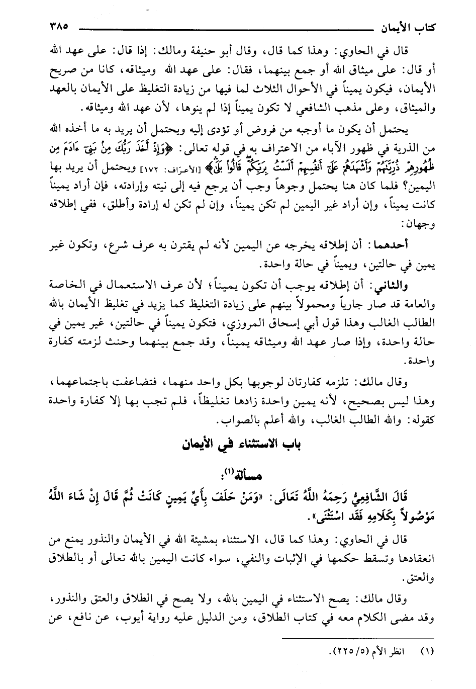 قال في الحاوي: وهذا كما قال، الاستث 3 ناء بمشيئة الله في الأيمان والنذور يمنع من انعقادها وتسقط حكمها في الإثبات والنفي، سواء كانت اليمين بالله تعالى أو بالطلاق والعتق.
