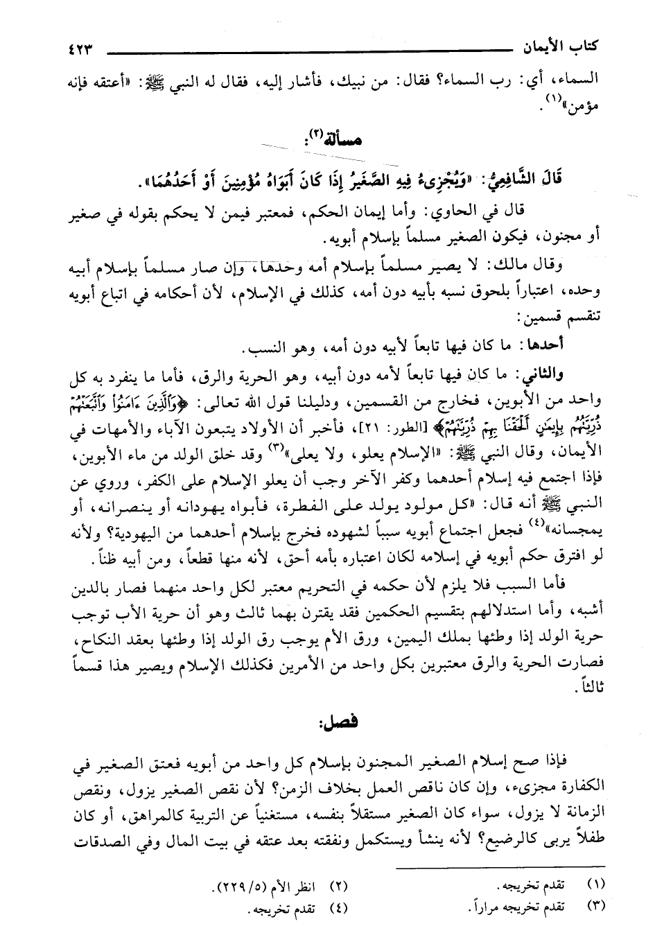قال الشافعي:" ويجزئ فيه الصغير إذا كان أبواه مؤمنين أو أحدهما".