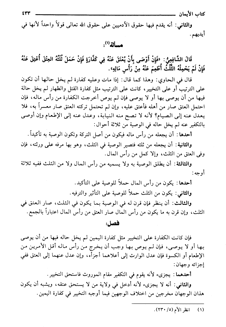 قَالَ الشَّافِعِيُّ: "فَإِنْ أَوْصَى بِأَنْ يُعْتَقَ عَنْهُ فِي كَفَّارَةٍ فَإِنْ حَمَلَ ثُلْثُهُ العِتْقَ أُعْتِقَ عَنْهُ فَإِنْ لَمْ يَحْمِلْهُ الثُّلُثُ أُطْعِمَ عَنْهُ مِنْ رَاسِ مَالِهِ".