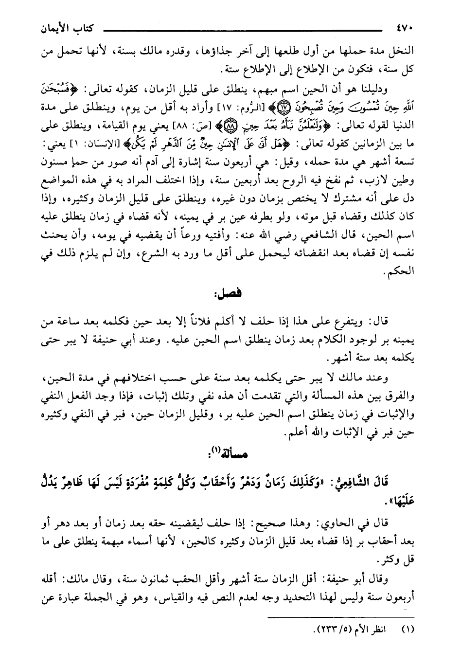 قال: ويتفرع على هذا إذا حلف لا أكلم فلانًا إلا بعد حين فكلمه بعد ساعة من يمينه بر لوجود الكلام بعد زمان ينطلق اسم الحين عليه. وعند أبي حنيفة لا يبر حتى يكلمه بعد ستة أشهر.