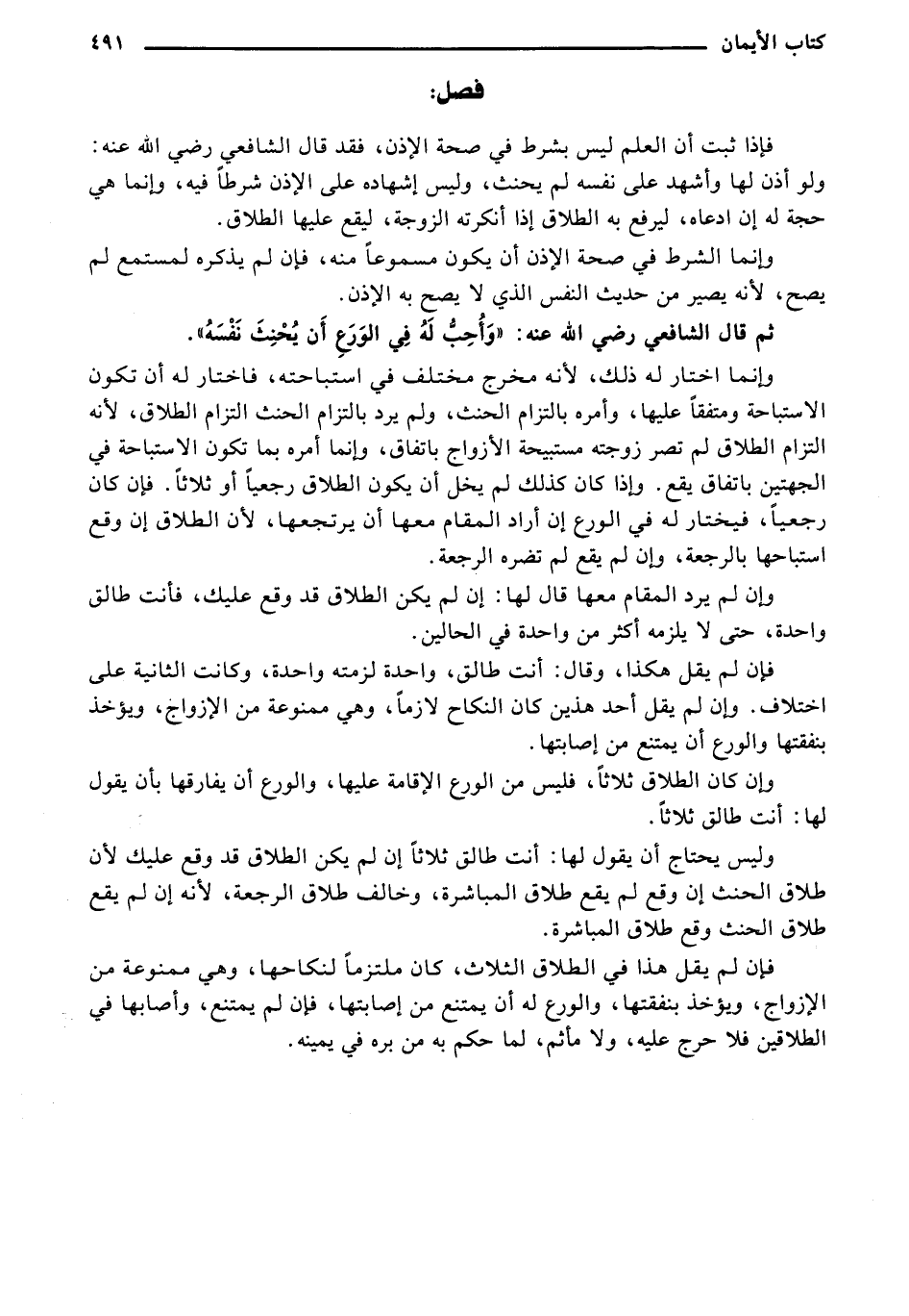 وليس يحتاج أن يقول لها: أنت طالق ثلاثًا إن لم يكن الطلاق قد وقع عليك لأن طلاق الحنث إن وقع لم يقع طلاق المباشرة، وخالف طلاق الرجعة، لأنه إن لم يقع طلاق الحنث وقع طلاق المباشرة.